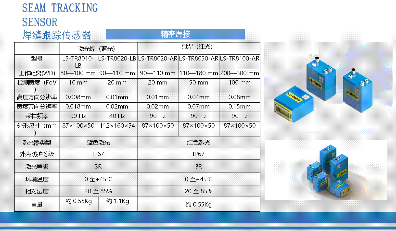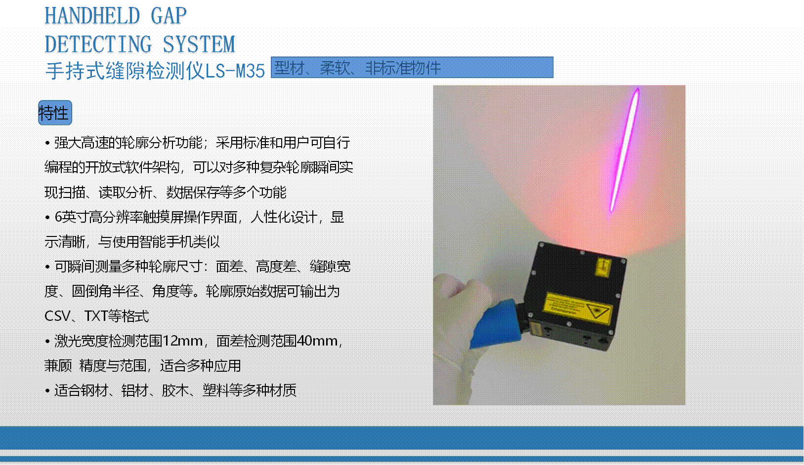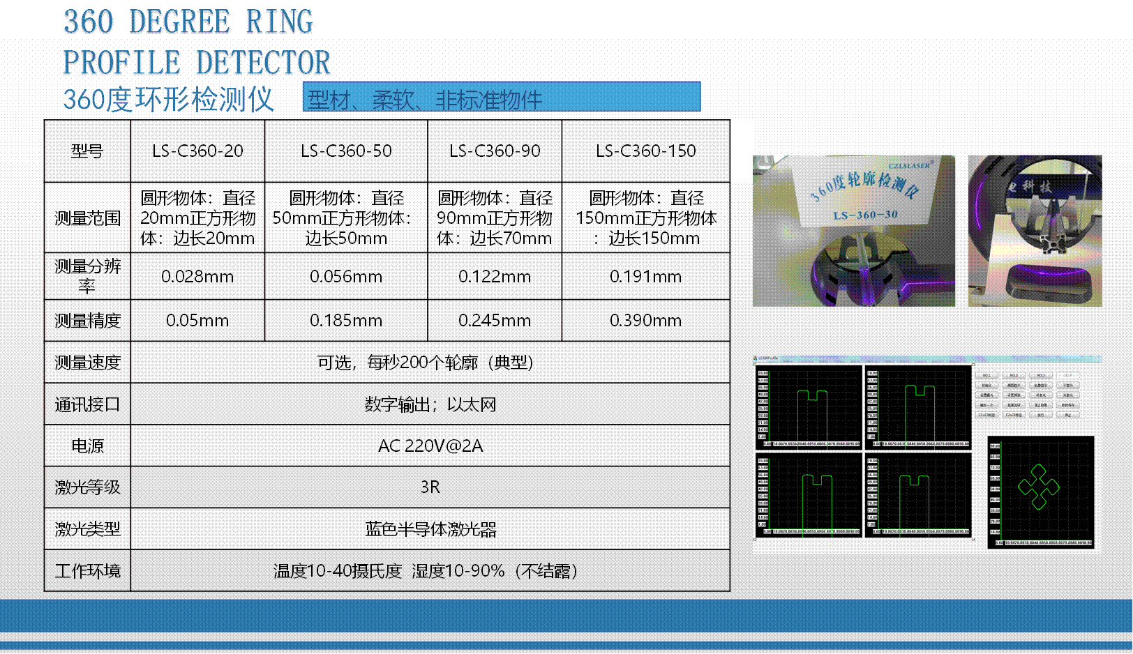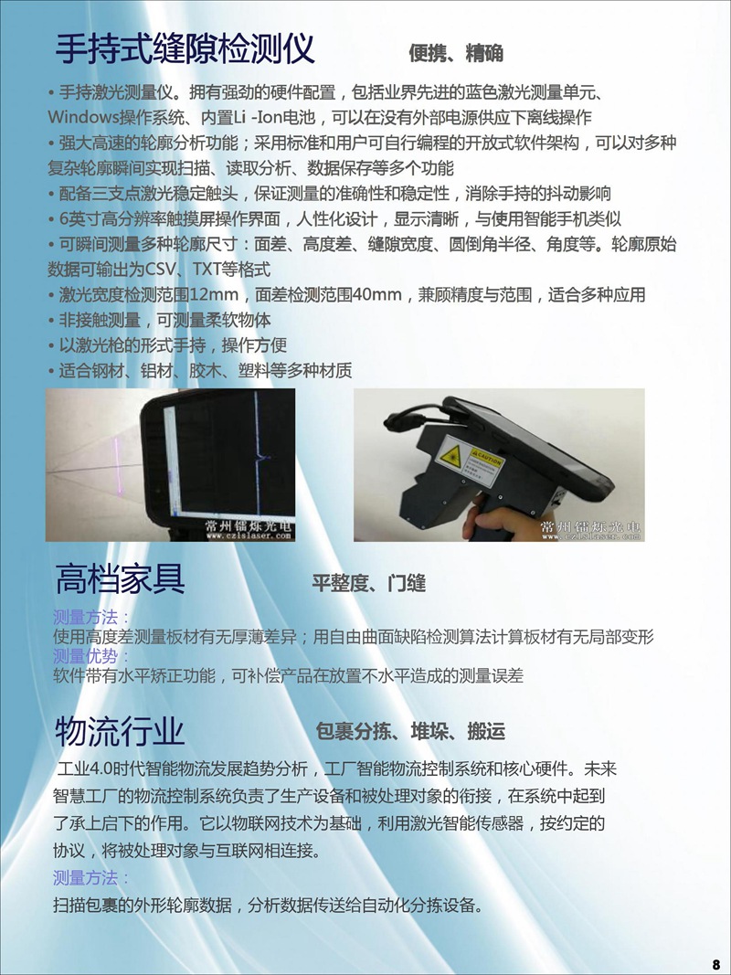 我司研發生產的3D輪廓傳感器注冊商標為:“CZLSLASER”,屬自主品牌,已有18個系列,藍光與紅光激光器,量程從6mm-1100mm,軟件通訊開放,可兼容任意通訊協議。可為客戶定制專用3D傳感器、定制專用軟件。
