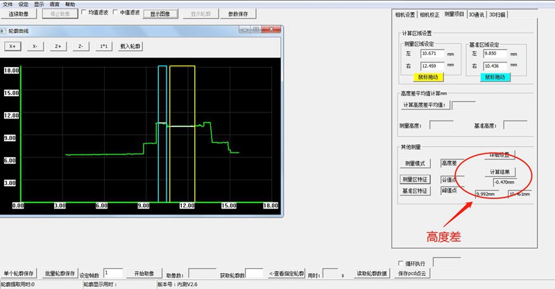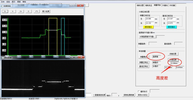 高度差:選取需要測量的兩個區域做差值,如上圖